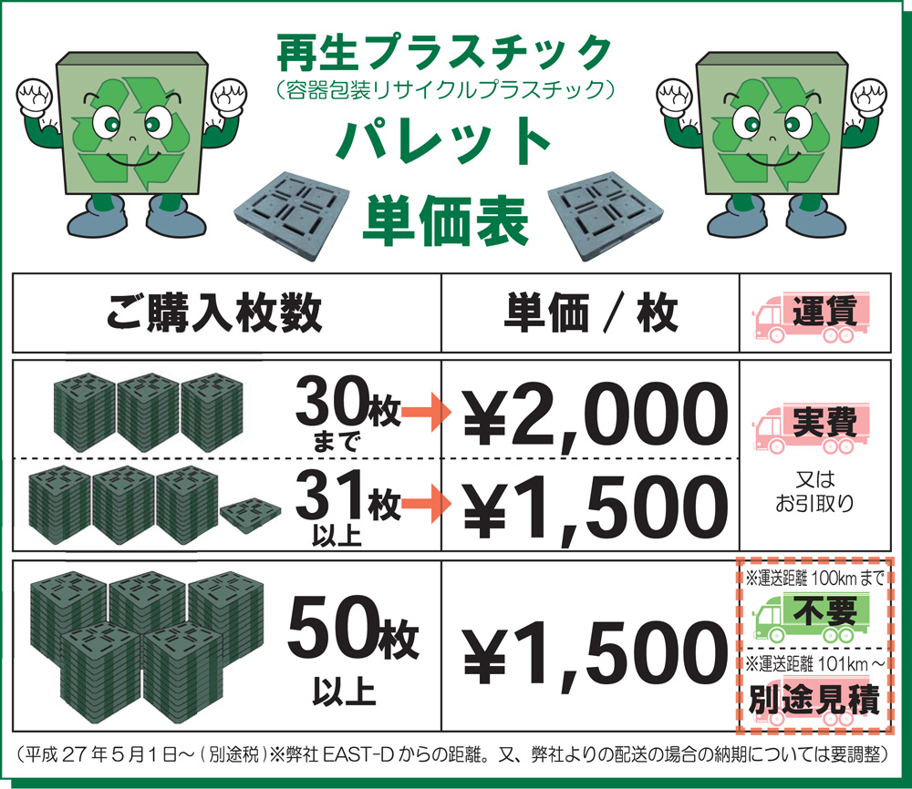 ・木製合板やバージンプラ板材に比べ、優位なコストパフォーマンスが展開できます。