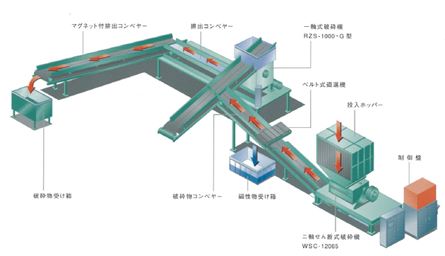 | 廃プラスチック類、建設廃材、ゴムくず、紙くず、繊維くず、ガラスくず、金属くず、廃タイヤ、廃家電、ドラム缶、一斗缶、自転車、マットレス、ベット等を資源化して原料、燃料等に有効利用されています。 また、破砕処理後に廃プラスチックを圧縮するラインを併設しています。 また医療現場より発生する、空の点滴パックや、薬品ボトルなどの廃プラスチックも、当工場にて中間処理後にEAST-Dにてリサイクル、 原料や製品に生まれ変わります。 |